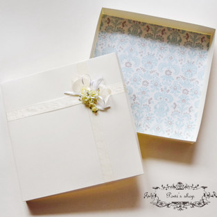 Накрая трябваше да направя и кутия за рамката, разбира се отново всичко е ръчна изработка от перлен картон, дизайнерска хартия, панеделки и цветя